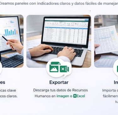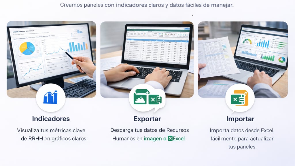 Desarrollo dashboards personalizados para indicadores de RRHH, adaptados a las necesidades de cada empresa.